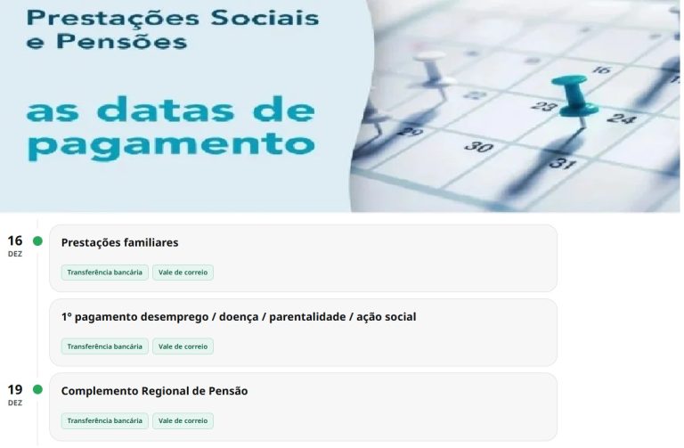 Na Segurança Social existe um calendário 📅específico para o pagamento dos vários subsídios sociais, Este calendário é atualizado permanentemente para garantir que todos os beneficiários recebam os seus pagamentos a tempo. Os novos pagamentos para as semanas 8 a 19 de dezembro. Consulte ainda mais artigos Segurança Social aqui no site O Caça Promoções.📅 Apoios 16 de … Continue a ler Subsídios: Datas pagamento Segurança Social próxima semana 8 a 19 de dezembro