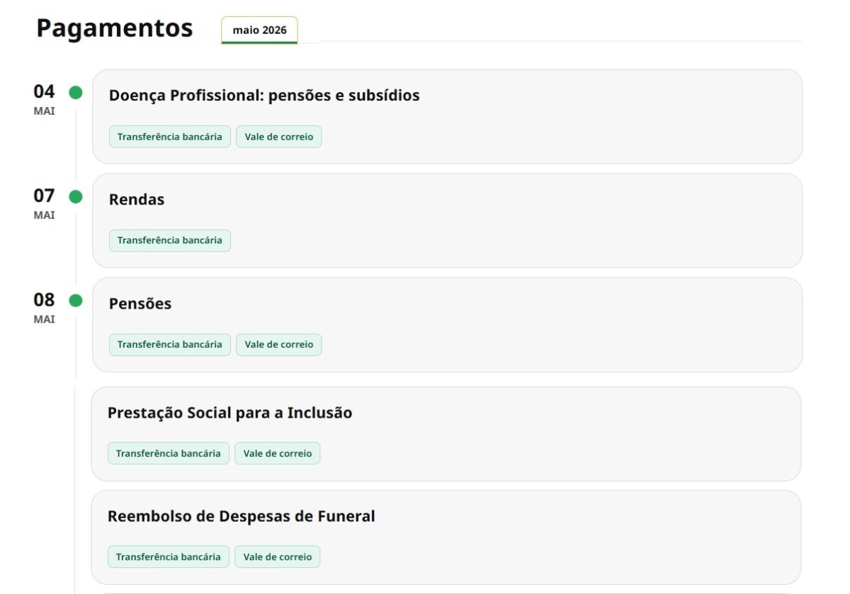 Fique a saber o dia de pagamento Segurança Social no mês de maio 2026, Toda a informação em pensões, subsídios, prestações sociais e mais, pagos através de transferência bancária ou vale de correio.📅 Tomem nota das informações, direitos e deveres. Os pagamentos serão nas datas abaixo mencionadas. Todos os dias a informação é atualizada ao minuto. Os … Continue a ler Subsídios e Pensões em maio: As Datas pagamento Segurança Social