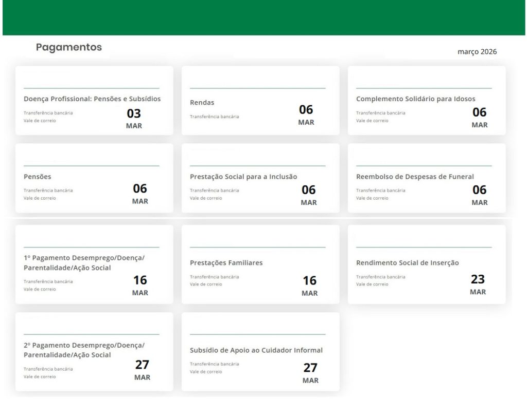 A informação Segurança Social sobre pensões, subsídios, prestações sociais, pagos através de transferência bancária ou vale de correio.📅