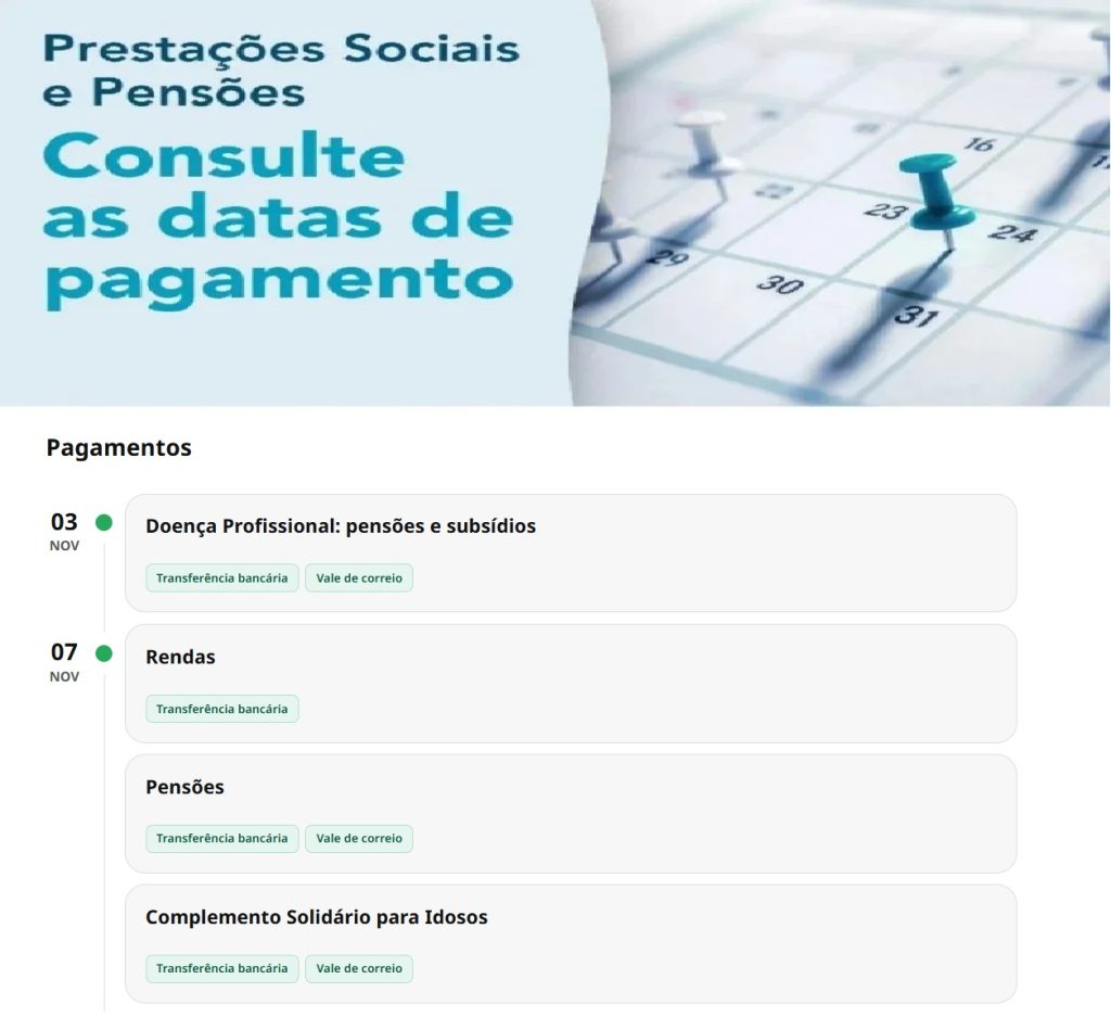 Este calendário é atualizado permanentemente para garantir que todos os beneficiários recebam os seus pagamentos a tempo. Os novos pagamentos para a semana 3 a 9 novembro. Consulte ainda mais artigos Segurança Social aqui no site O Caça Promoções.📅