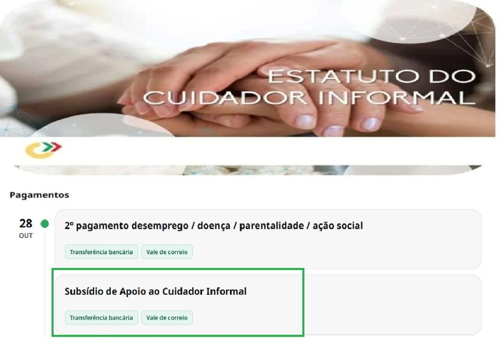 O pagamento mensal por Transferência bancária ou Vale de correio será a 28 de outubro juntamente com outros apoios assinalados caso tenha direito.